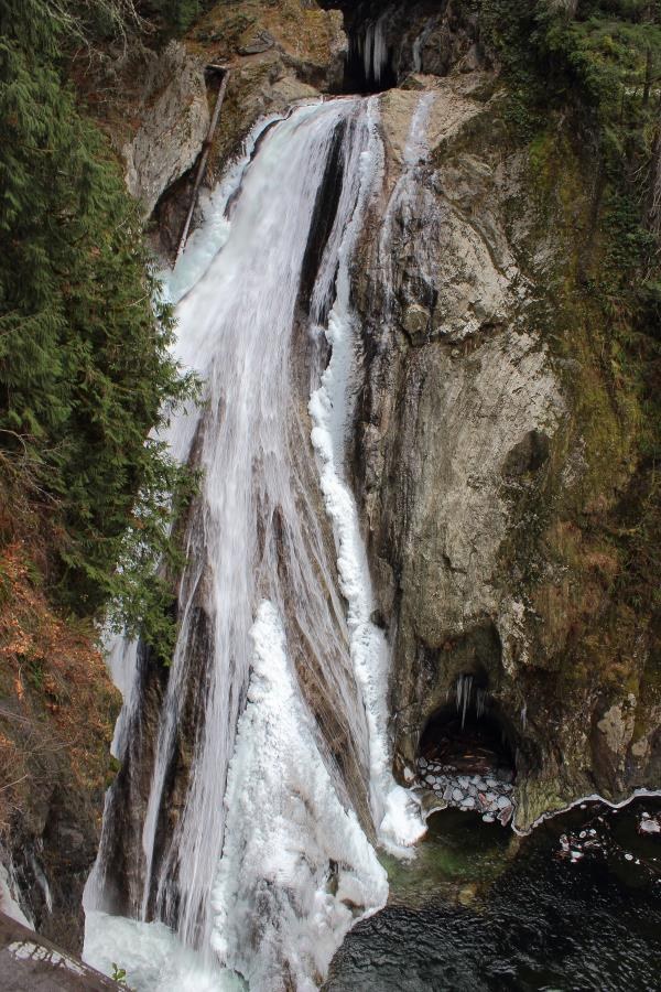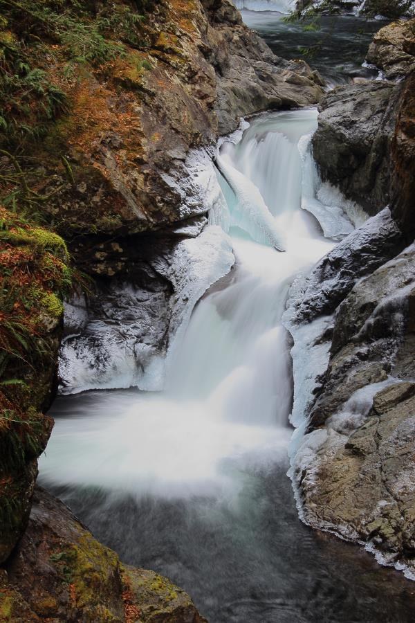 After checking out the frozen Franklin Falls I stopped for a quick trip at Twin Falls. I met two people from out of state. I am always impressed at how many people I meet on the trails that are visiting. We have a beautiful state. There were a couple spots with some ice on the trail. I was able to navigate without issue. I walked with a couple nice gentlemen for a while and they told me they saw a young woman fall on the ice. Always do your best to be cautious on ice. There was a small amount of ice on the river and falls. Trails in good shape and is always a fun place to visit!