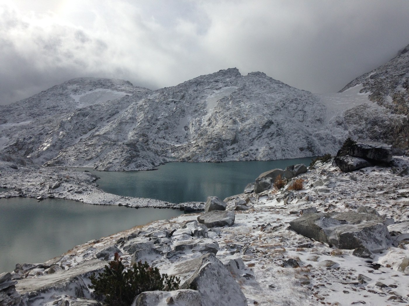 Headed out to the Enchantments this weekend hoping to get one last excursion in ahead of the snow...but we were one day too late! Arrived the night before and heard a harrowing tale of day hikers getting stuck in a blizzard, but the forecast looked good so we decided to attempt despite some concerns about snow/ice/cold.