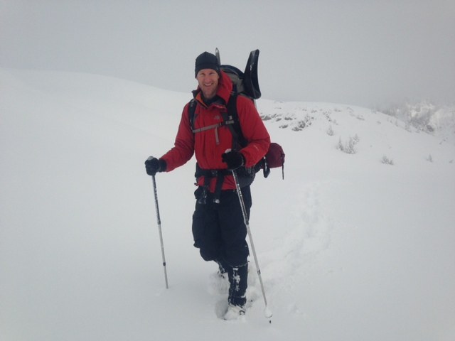 My buddy Chad and I were determined to get to Artist Point regardless of the weather this weekend and try our chances in getting out to Ptarmigan Ridge and/or Chain Lakes in the afternoon and on day 2. We arrived at the Mt Baker ski area around 10:15 Friday morning (still temporarily closed). Some clouds, visibility was good. Recent snowfall made snowshoes a necessity after just a few hundred yards. We reached Artist Point (about a 2 mile hike, depending on how direct you go). We could see the top 4 feet of the outhouse roof. We continued past Artist Point and up toward Huntoon Point. We found a suitable place for our site (protected from the winds from the north and west). By the time we finished digging out a level spot and getting our tent in, the snow started falling. And falling. Soon conditions were near white out--we could only see 6-8 feet in front of us and quickly realized that the smarter choice would be to stay put. Dug a partial snow cave and practiced using our avalanche beacons. The snow kept falling until around midnight. The moon came out for awhile and then rain starting falling sporadically around 3 or 4am. We hoped morning would bring clear skies but visibility was still pretty bad at 7am, and it was snowing again. Given the hard layer of snow, with about 8-10 inches of new snow overnight, we weren't confident avalanche conditions were in our favor. So we did some snow shoeing around Austin Pass and made our way back down to the ski area. Cloud breaks gave some spectacular views of Shuksan and nearby peaks. Wow! Lots of friendly skiers on their way up for fresh powder.