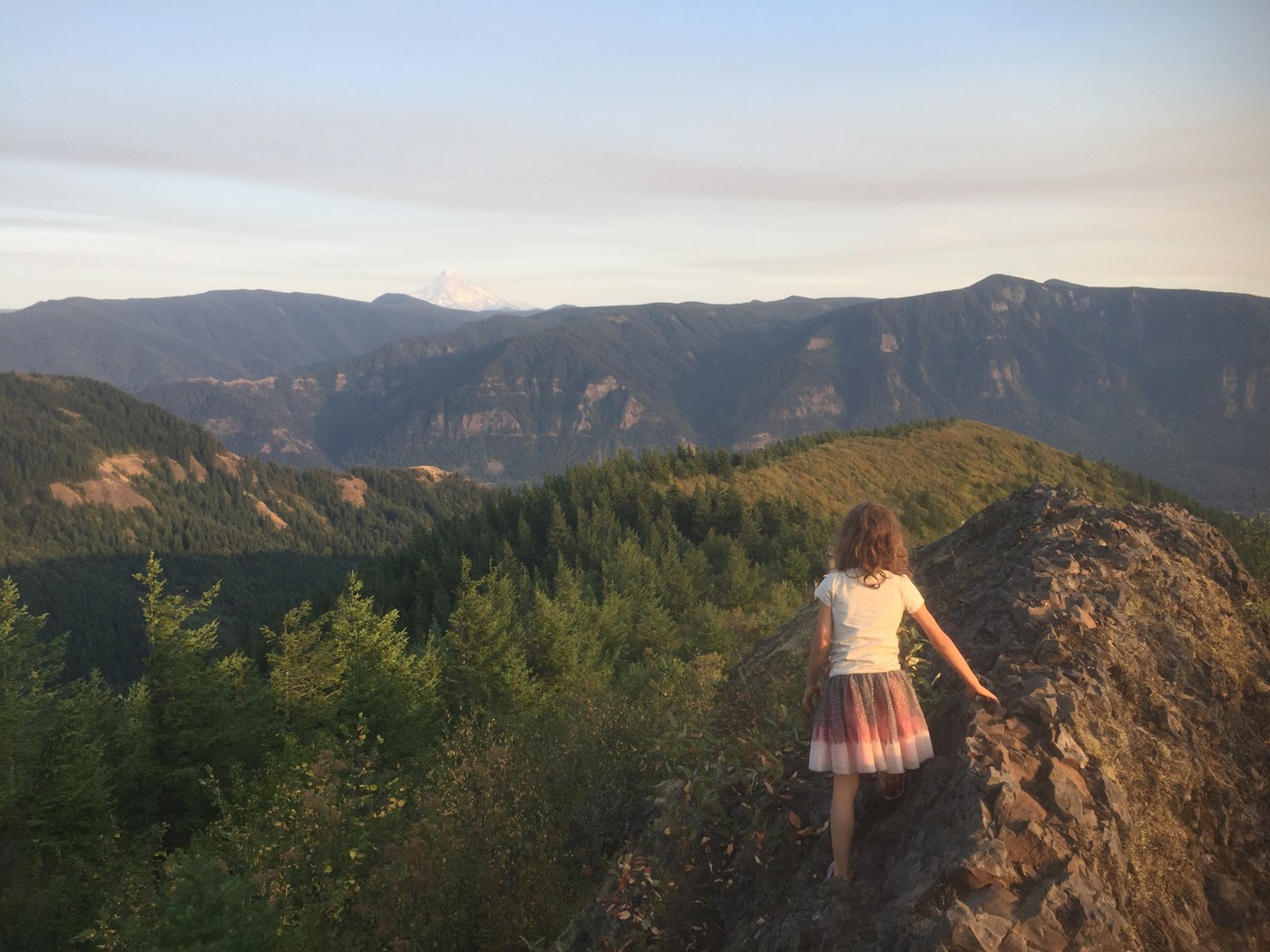 Finally we made it to the top just as the sun was getting low and I changed our last available diaper! It was worth it. We got down to the parking lot after dark and texted mom that we were on the road home and asked if she could please have a hot pizza waiting for us.