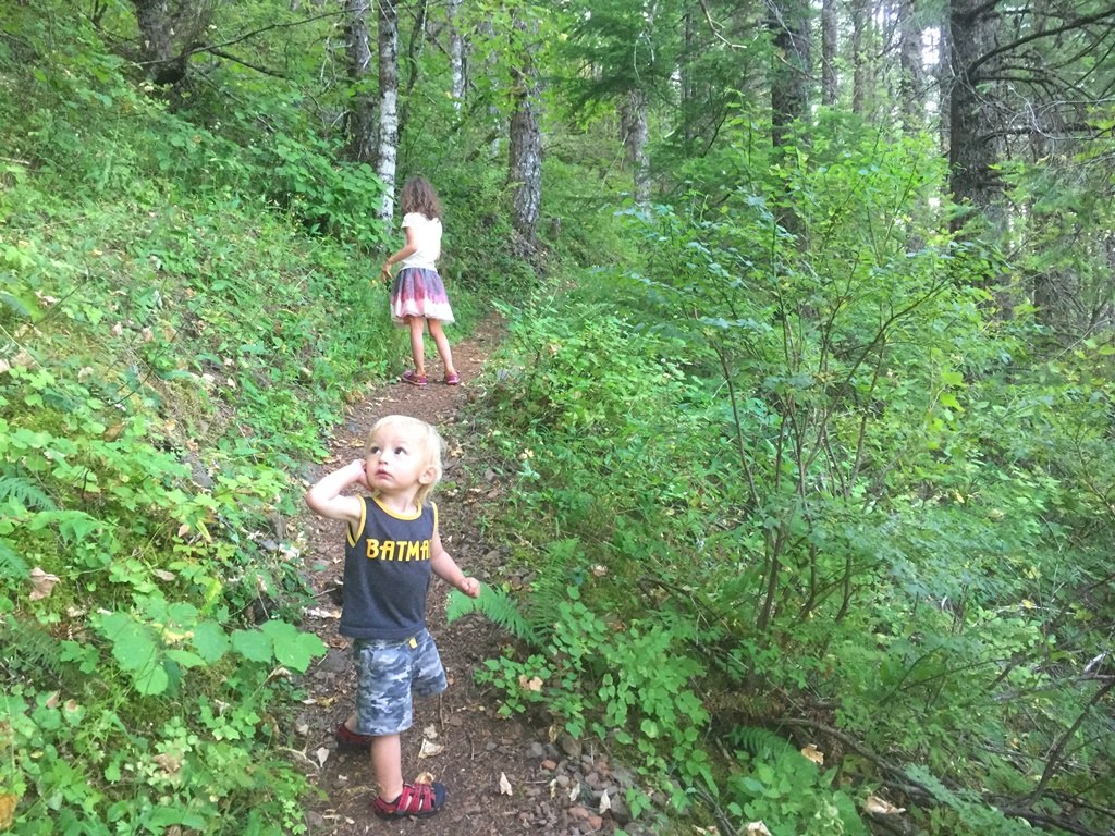 As this was our last hike of the weekend's road trip we were all pretty tired. To keep the kids entertained I switched things up - going from both kids riding to both kids walking and then finally for the last push I put Lola in the backpack and Kai on my shoulders. (we left the stroller at the beginning of the single-track that is the start of the Hardy Ridge Trail). I also let Lola take pictures with my phone at one point. It slowed us down, but she had fun and that's what counts.