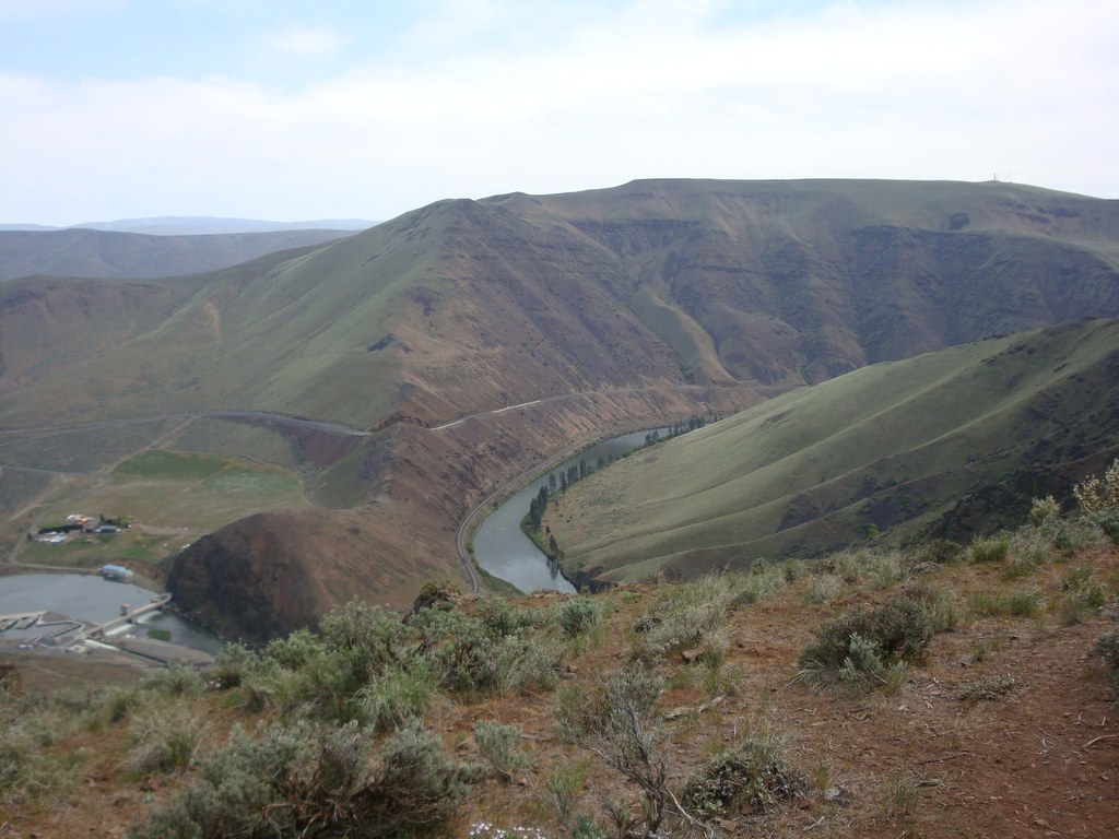 From this area, follow the trail as it winds through fields of balsamroot and cheatgrass, gradually leading to the rim of the canyon about a half mile from the trailhead. Here you can peer down into Yakima Canyon without risking vertigo -- the ground falls away in a staircase pattern so it's not a sheer drop. Despite that, keep children close at hand here.
