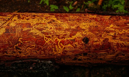 You’ve likely clambered over a barkless tree trunk across the trail and come face to face with a weird, artistic pattern carved in the wood. The artists in this case are beetles. Yes, beetles, and the natural, artistic display is known as a beetle gallery.