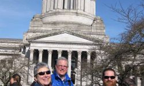 Nearly one hundred hikers are in the state capitol for Hiker Lobby Day, organized by Washington Trails Association. After a morning issue briefing and training session, hikers will spend the afternoon meeting with their state representatives and senators, urging their support for state recreation lands.